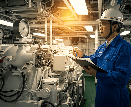 エンジンやポンプなど、船の“心臓部”となる機械の据付・調整を行う技術職です。船が実際に動き出す瞬間に立ち会える、やりがいの大きい仕事。機械いじりが好きな方に特におすすめです。